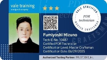 Vale は、PDR(Paintless Dent Repair:塗装をせずにヘコミを修復する技術)の技術者を認定する国際的な認証制度を運営しています。